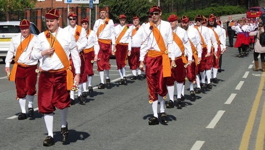 The Day for St George brought the sun out on 22nd April and the good folk of Horwich were treated to a festival of morris dancing from four Lancashire teams.