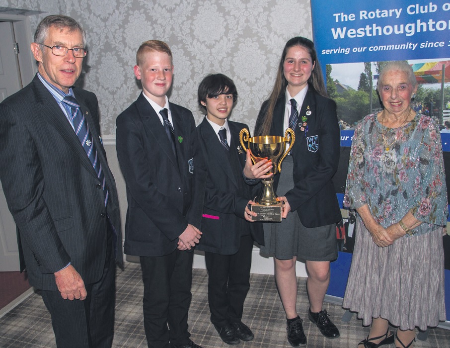 The overall winners were Westhoughton High School Intermediate team of Chloe Pritchard, chairperson, Charlotte Rea, speaker and Louis Fitzpatrick, proposer of the vote of thanks.